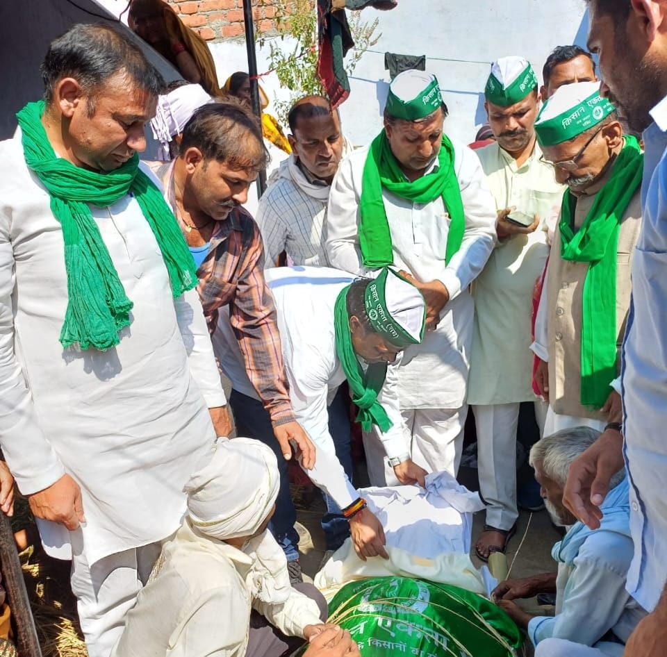 बरेली । कल शाम हृदय गति रुक जाने से किसान नेता श्रीपाल सिंह गुर्जर का देहांत हो गया था आज हजारों लोगों ने व संगठन के पदाधिकारियों ने उन्हें श्रद्धांजलि अर्पित की राष्ट्रीय संरक्षक चौधरी बाली सिंह जी व राष्ट्रीय संगठन मंत्री डाँ रवि नागर सहित संगठन के उत्तर प्रदेश अध्यक्ष पंडित प्रमोद शर्मा युवा के प्रदेश अध्यक्ष पंडित राजेश शर्मा प्रदेश संगठन मंत्री चौधरी जगपाल सिंह यादव प्रदेश उपाध्यक्ष श्याम पाल गुर्जर महानगर अध्यक्ष दीपक पांडे जिला महासचिव अवधेश गुर्जर हापुड़ के जिला अध्यक्ष प्रमोद महानगर उपाध्यक्ष संजय पाठक नहीं मिलकर राष्ट्रीय अध्यक्ष चौधरी सोरेन प्रधान जी द्वारा भेजा हुआ संगठन ध्वज अर्पित कर परिवार के लोगों को इस दुखद समय में सम्बल प्रदान किया।