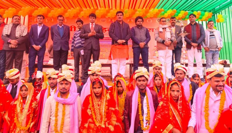 बस्ती: मुख्यमंत्री सामूहिक विवाह योजना के अंतर्गत शनिवार को श्री रामरेखा मंदिर परिसर में नवदम्पत्ति जोड़ों ने सात फेरे लिए। सामूहिक विवाह के अंतर्गत चार ब्लॉक हरैया, विक्रमजोत, दुबौलिया, परशुरामपुर और नगर पंचायत हरैया को मिलाकर कुल 351 जोड़ों ने सात फेरे लिए। विधायक अजय सिंह ने कहा कि सामूहिक विवाह योजना समाज की समरसता एवं समरूपता का प्रतीक है। पहले गरीब परिवार के व्यक्ति बेटियों की शादी को लेकर काफी चितित रहते थे। यही नहीं बेटियों के जन्म से वह दुखी भी होते थे। गरीबों की इस समस्या के निदान के लिए प्रदेश सरकार ने मुख्यमंत्री सामूहिक विवाह योजना लागू की है। विधायक अजय सिंह, जिलाधिकारी आंद्रा वामसी, मुख्य विकास अधिकारी जयदेव सीएस सहित सभी अतिथियों ने नवदम्पत्ति को गृहस्थ आश्रम में प्रवेश कर जन्म जन्मांतर के पारिवारिक एवं सामाजिक उत्तरदायित्व के कर्तव्य निर्वहन हेतु जीवन की नई पारी पर वर- वधू को आशीर्वाद एवं शुभकामना दिया। विवाह के अंतर्गत विधि विधान से वैदिक मंत्रोच्चार के बीच सभी नवदंपतियों ने अग्नि को साक्षी मानकर सात फेरे लिए और एक दूसरे को वरमाला पहनाया। प्रेशर कुकर, डिनर सेट, सीलिंग फैन, बॉक्स, क्रॉकरी सेट, पैंट-शर्ट का कपड़ा, साड़ी आदि उपहार भी दिए गए।