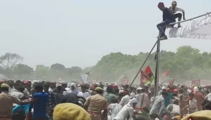लोकसभा लालगंज के खरेवां में सपा मुखिया अखिलेश यादव की जनसभा का आयोजन किया गया था। जैसे ही अखिलेश अपना संबोधन शुरू करने के लिए उठे कार्यकर्ता जोश में आ गए, जिससे कुछ देर के लिए भगदड़ की स्थिति उत्पन्न हो गई। पुलिस ने मौके पर पहुंचकर मामले को संभाला। इस दौरान पुलिसकर्मियों द्वारा कुछ लोगों पर डंडा चलाने की भी बात सामने आ रही है।