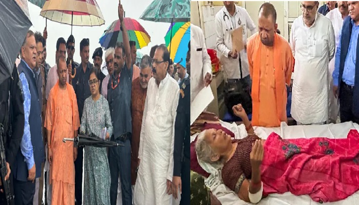 हाथरस: यूपी में हाथरस जिले के फुलराई गांव में साकार हरि बाबा के सत्संग समाप्ति के बाद जैसे ही भीड़ निकलना शुरू हुई तो भगदड़ मच गई। इस हादसे में कार्यक्रम में शामिल होने आए 121 लोगों की मौत हो गई। बुधवार को मुख्यमंत्री योगी आदित्यनाथ ने हाथरस के सरकारी अस्पताल में भगदड़ की घटना में घायल हुए लोगों से मुलाकात की और उनके स्वास्थ्य के बारे में जानकारी ली। वह अस्पताल में भी पहुंचे और पीड़ितों का हाल-चाल जाना। इसके बाद सीएम सिकंदराराऊ में घटनास्थल पर पहुंचे और यहां निरीक्षण करते हुए घटना की जानकारी ली।