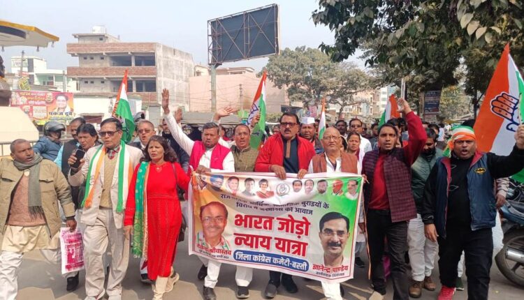 बस्ती: विकास क्षेत्रों में पिछले 4 दिनों से भारत जोड़ो न्याय यात्रा के समर्थन में की जा रही पदयात्रा का समापन महात्मा गांधी के शहादत दिवस पर गांधी कला भवन में ‘रघुपति राघव राजाराम’ गा कर किया गया। जिलाध्यक्ष ज्ञानेन्द्र पाण्डेय के आवाह्न पर इकट्ठा हुये कांग्रेसियों ने बापू की प्रतिमा के सामने उनका प्रिय भजन गाया और यहां से पदयात्रा निकाली जिसका समापन शास्त्री चौक पर राष्ट्रगान के साथ हुआ।