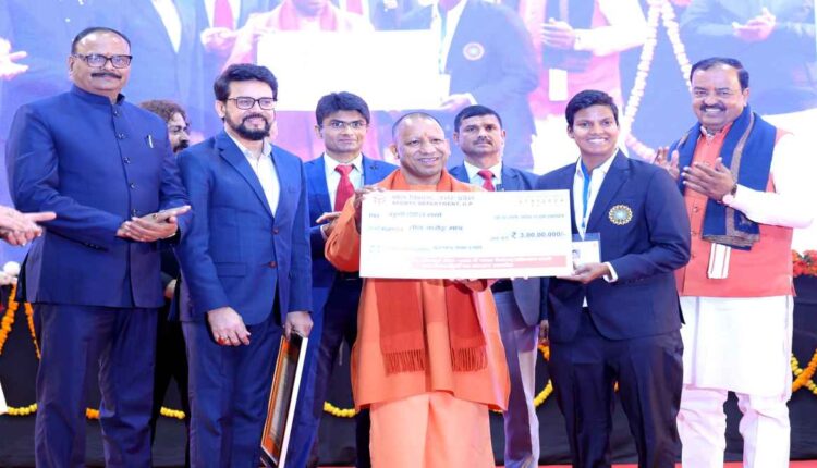 मुख्यमंत्री योगी आदित्यनाथ ने कहा कि पिछले दस वर्ष के अंदर खेलों में एक माहौल बना है। युवा ऊर्जा के प्रोत्साहन के लिए जो एक नया प्लेटफॉर्म प्रधानमंत्री जी ने दिया है,उनके विजन को उनकी भावनाओं के अनुरूप जमीनी धरातल पर उतारने के लिए प्रदेश सरकार ने प्रतिबद्धता के साथ कार्य किया है। उन्होंने कहा कि उत्तर प्रदेश में देश की 16 आबादी निवास करती है और हमारे खिलाड़ियों ने एशियन गेम्स के 25 फीसदी मेडल प्राप्त किए हैं। नेशनल गेम्स में भी यूपी के खिलाड़ियों ने अच्छा किया है और उसे और भी अच्छा करने के लिए यह सार्वजनिक कार्यक्रम आयोजित किया गया है। उन्होंने कहा कि पिछला एक सप्ताह हम लोगों के लिए प्रदेश की विभूतियों को सम्मानित करने के लिए अत्यंत महत्वपूर्ण रहा है।