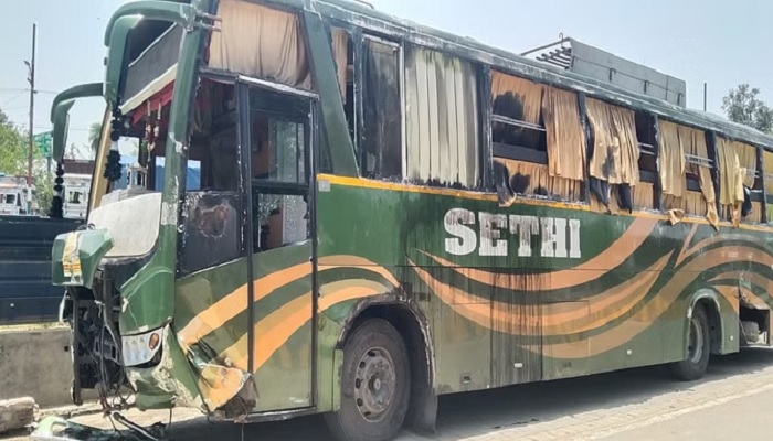लखनऊ-दिल्ली हाईवे पर गायों से टकराकर पलटी पीटीसी स्‍काई बस, 15 यात्री हुए घायल