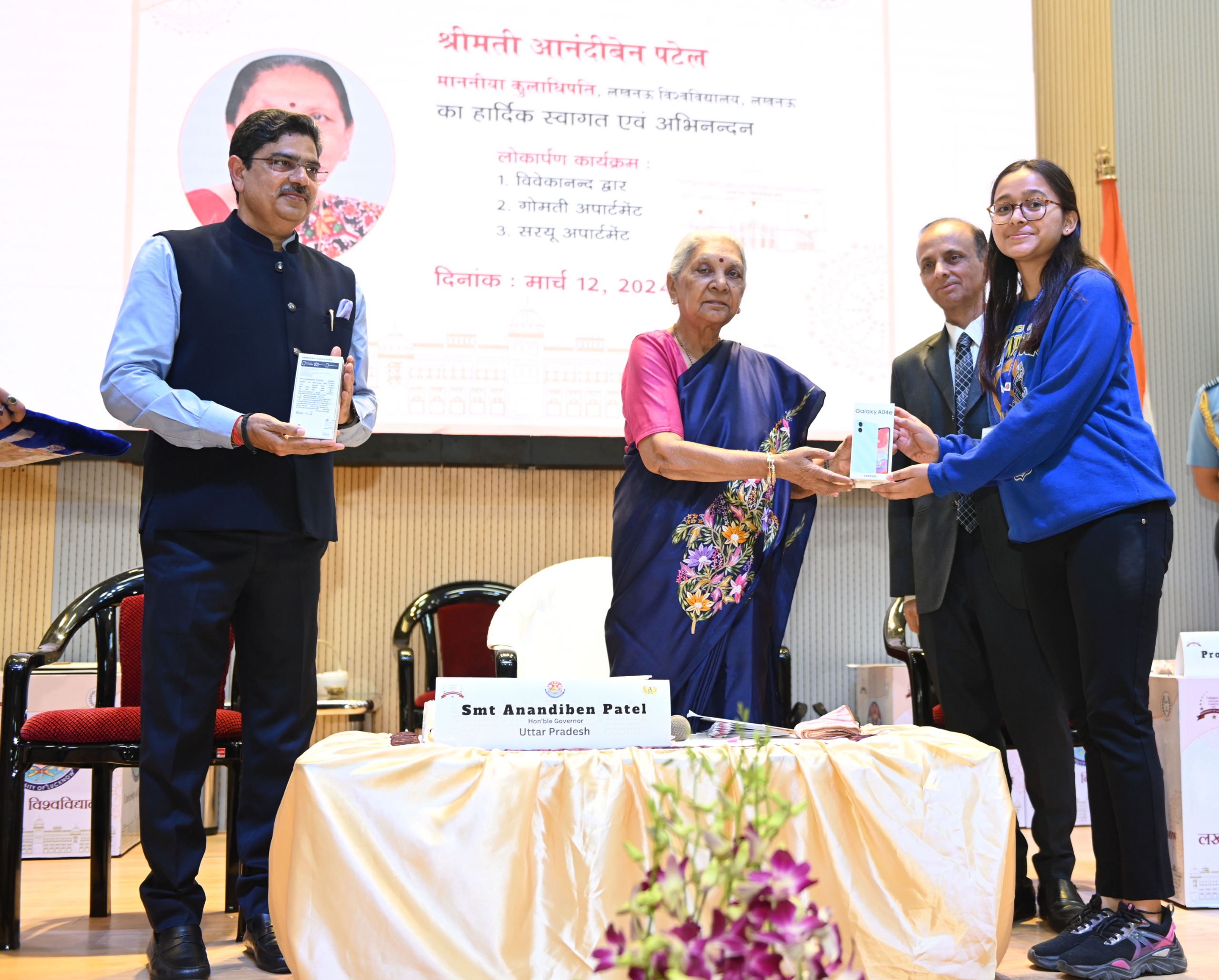 लखनऊ: उत्तर प्रदेश की राज्यपाल एवं कुलाधिपति आनंदीबेन पटेल ने आज लखनऊ विश्वविद्यालय, लखनऊ में मुख्य प्रवेश द्वार विवेकानंद द्वार तथा विश्वविद्यालय के कर्मचारियों हेतु आवास गोमती अपार्टमेंट व सरयु अपार्टमेंट का लोकार्पण किया।